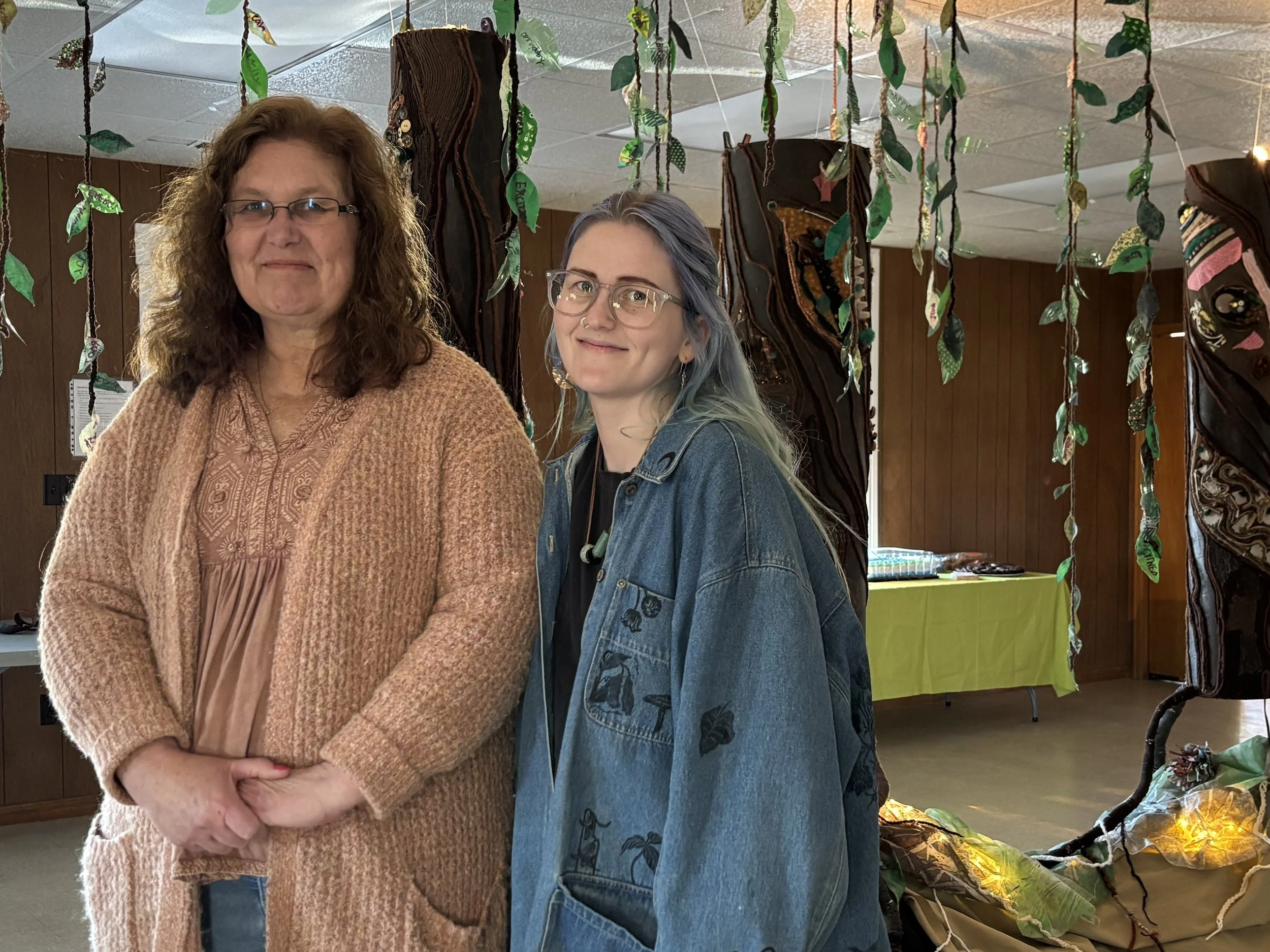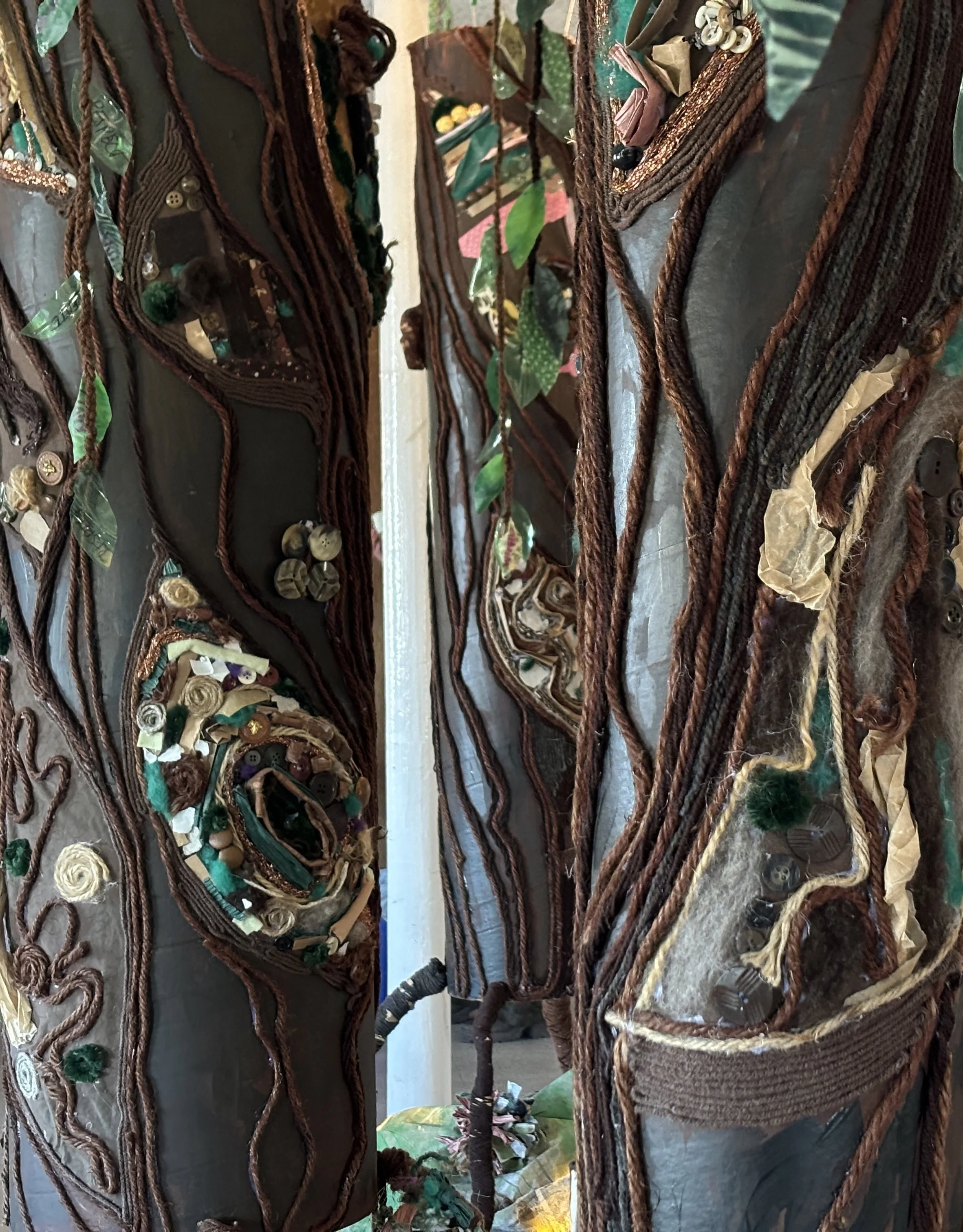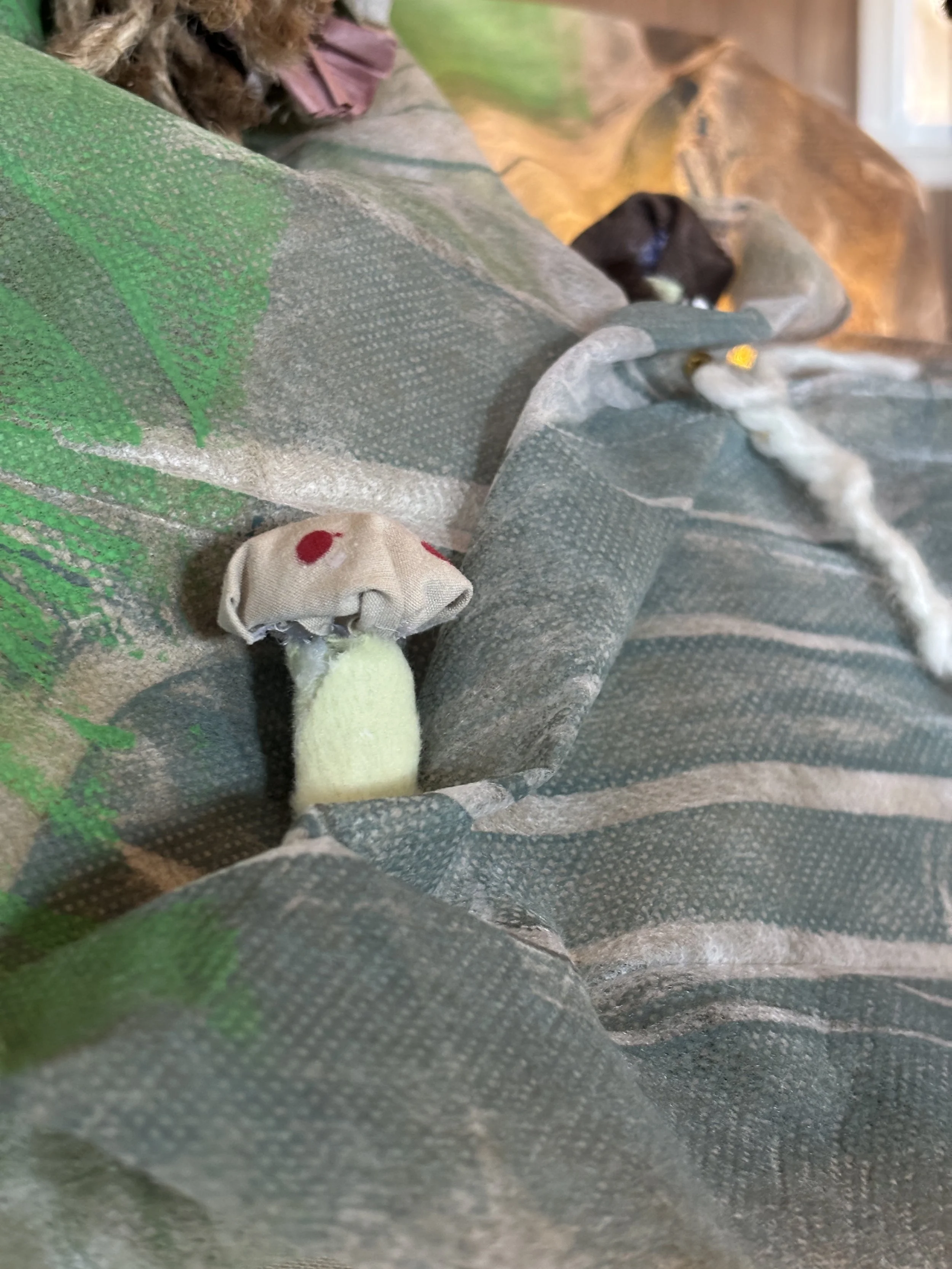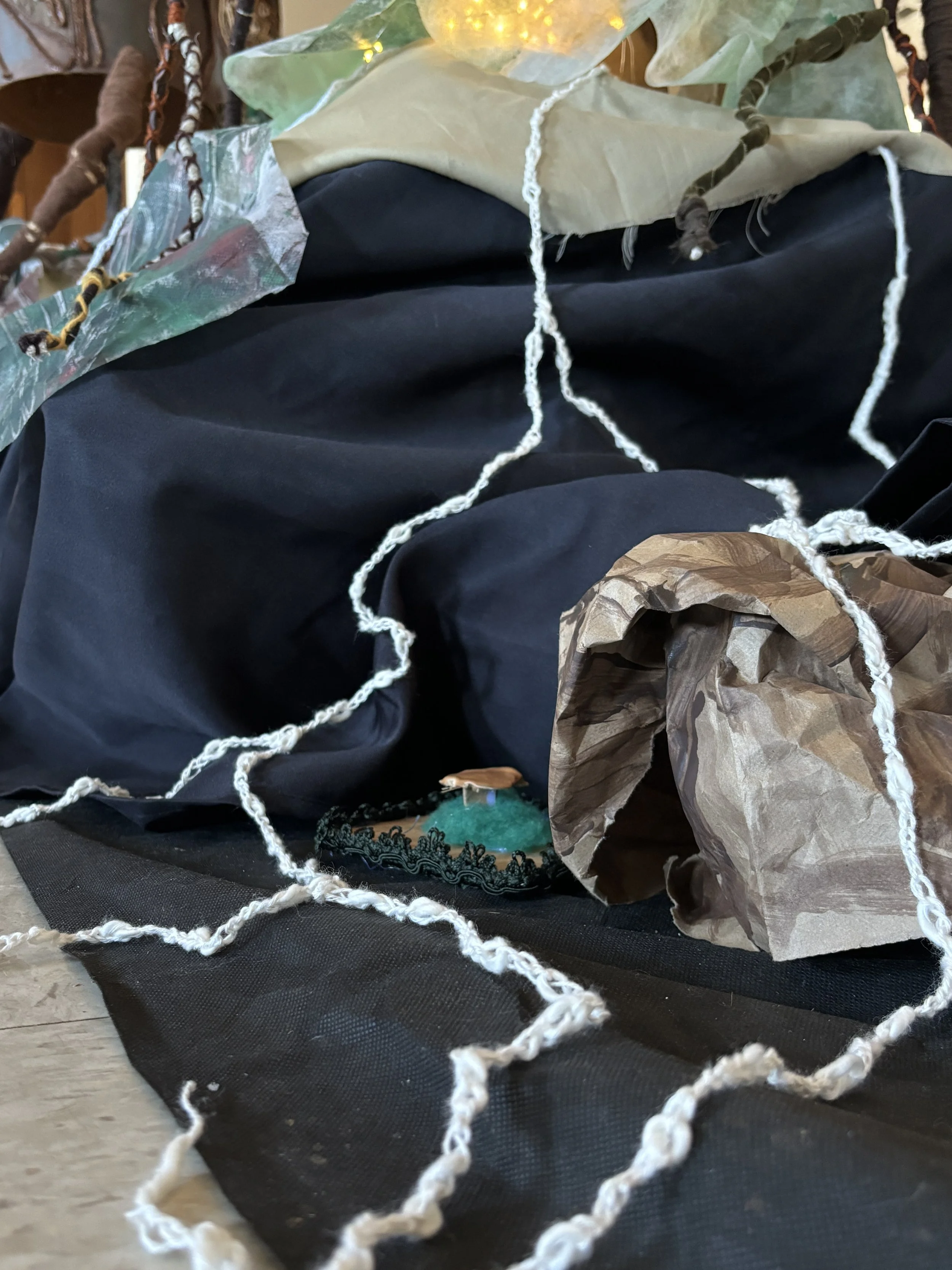In collaboration with the Conservation Council of New Brunswick, Kim and Anne participated in a 6 month artist residency From Harm to Harmony. [IN]visible is the results of our climate action community project. Over 3 workshops, 10 kids explored environmental topics surrounding forest stewardship. Understanding what goes on in the forest above ground (visible), below ground (invisible) and the overall connection and impact a balanced eco system has on our planet and our lives. A call to action was put out to the community of Keswick Ridge to source recyclable and up cycled materials. Working as environmentally conscious as we could, the kids explored the use of many different materials to collaborate on a 3D forest installation. A collaged mother tree and her young, yarn coiled roots, waxed dipped fabric leaves, crocheted branches and mycelium and an array of mixed media critters and fungi, the installation grew. An exhibition took place on Earth Day, in April 2024. The public was invited for an evening of celebration and great discussion surrounding forest stewardship and climate action art.